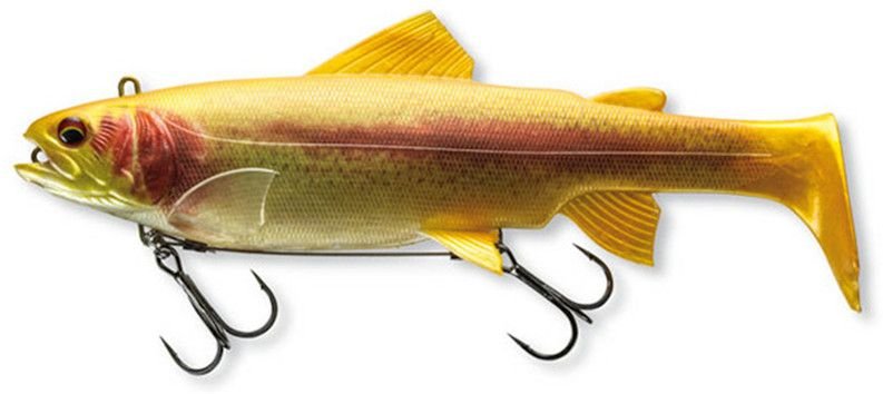 Schon beim ersten Blick auf den Daiwa Prorex Live Trout Swimbait DF Gummifisch montiert fällt sofort auf, dass er einer echten Forelle täuschend ähnlich sieht. Durch ein 3D Druckverfahren, bei dem das Bild einer echten Forelle auf den Körper gedruckt wird, konnte diese extrem realistische Farbgebung erreicht werden. Der Prorex Live Trout Swimbait ist ein idealer Köder für große Hechte, die sich gerade in Seen und Flüssen mit Forellenbestand auf diese Beute spezialisiert haben. Der Live Trout eignet sich für langsame und schnelle Köderführung und läuft mit leicht flankenden Bewegungen durchs Wasser – ähnlich wie eine echte Forelle.