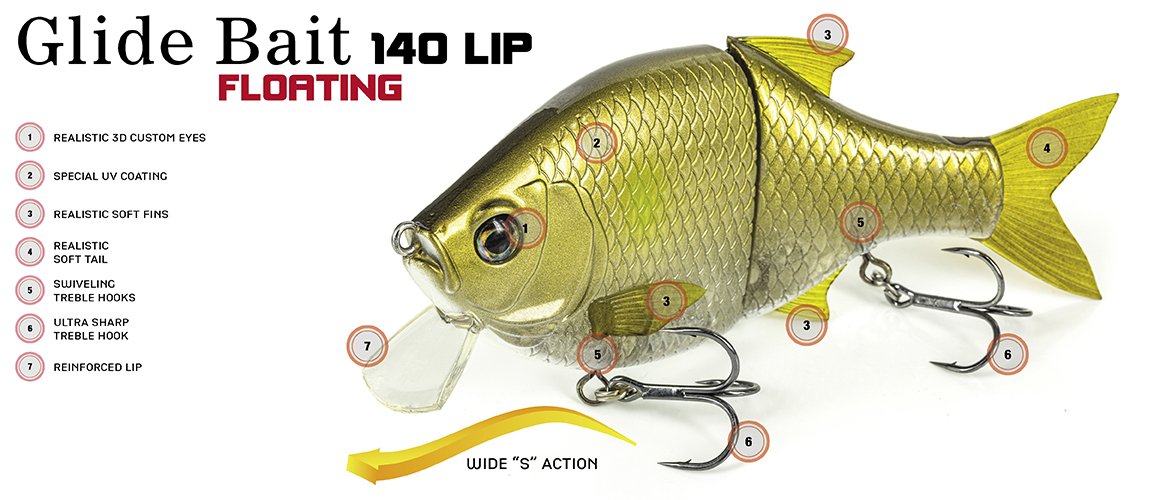 The Glide Bait 140 Lip is an extremely functional swimbait with a nice design and realistic aesthetic details. It’s an extremely technical bait, starting from the still position in the water. It performs better with strong wind or accentuated wave motion where it is essential to give the bait a more nervous and recognizable movement. Retrieve it slowly in calm water conditions to trigger unexpected attacks. The Molix Glide Bait is equipped with quality treble hooks mounted on swivels to withstand the toughest fights. 3D eyes and soft and realistic fins complete this lure dedicated to the search for large predators.